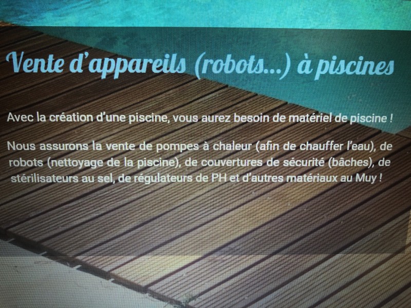 Vous êtes à la recherche d’un Pisciniste dans le secteur de Frejus, faites appel à la société du Duculty Piscine pour tous vos projets de Piscine, spécialiste de la construction de piscine depuis 1986. La société situé dans la commune du Muy dans le Var propose des projets de création de Piscine, ainsi que de rénovation de la piscine existante. La société Duculty Piscine propose également l’aménagement de Piscine et la vente d’accessoires de nettoyage de piscine. Faites appel à la société aux 04 94 45 90 40 rendez-vous dans nos locaux aux 840, rue de Frejus sur la RN sept dans la commune de Le Muy 83 490 à très bie